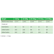 - Under 10kg: 0.5mL daily
