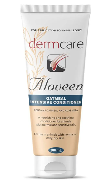 Suitable for dogs, cats, and horses, Aloveen® Oatmeal Intensive Conditioner may be used after bathing with Aloveen® Oatmeal Shampoo or Dermcare Natural Shampoo, or applied between washes to keep the coat healthy and easy to manage. Its emollient action locks in moisture, leaving the skin nourished and the coat smooth, silky, and pleasantly fragranced.