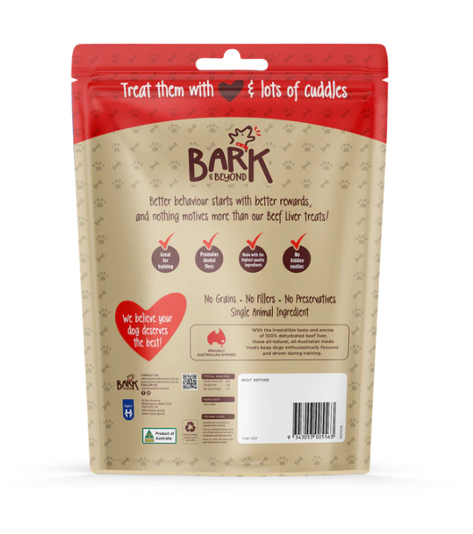 Bark & Beyond Beef Liver Dog Treats are a premium, natural reward designed to motivate, train, and delight dogs of all breeds and life stages. Made in Australia using 100% dehydrated beef liver, these highly palatable treats deliver an irresistible aroma and rich flavour that dogs find impossible to ignore.