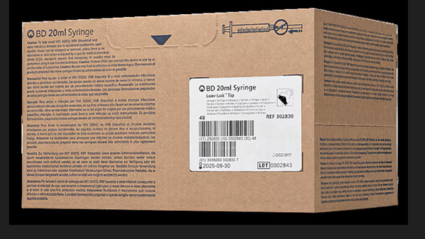 BD 20mL Luer Lock Syringes are high-quality, single-use syringes designed for secure and reliable administration. Featuring a Luer-Lok tip for a tight needle connection, these syringes help reduce leakage and accidental disconnection during use.
