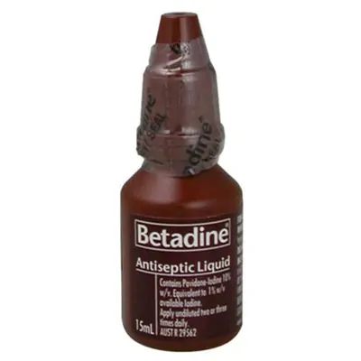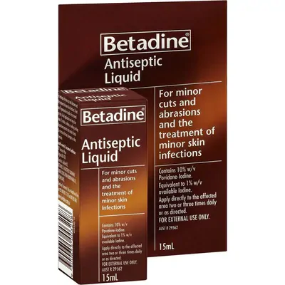 Betadine Antiseptic Liquid (Topical Solution) provides fast and effective antiseptic action for minor cuts, abrasions, and minor skin infections. Suitable for adults and children over 2 years (on medical advice), it kills bacteria commonly responsible for minor wound infections.