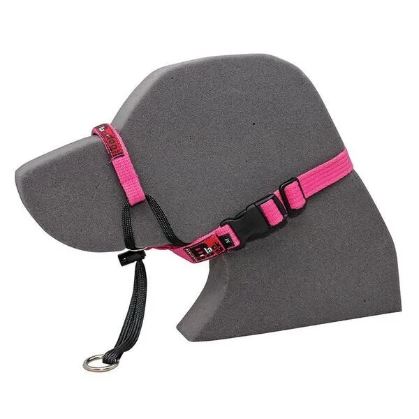 The BlackDog Training Halter - Medium Red is a classic style halter that connects to the lead under the dog's jaw, making it a popular choice among trainers for over five years. This halter features a dynamic design that moves with your dog, keeping the Nose Bridge strap in a comfortable position. This prevents it from riding up close to the dog's eyes, ensuring a more comfortable fit for the dog.