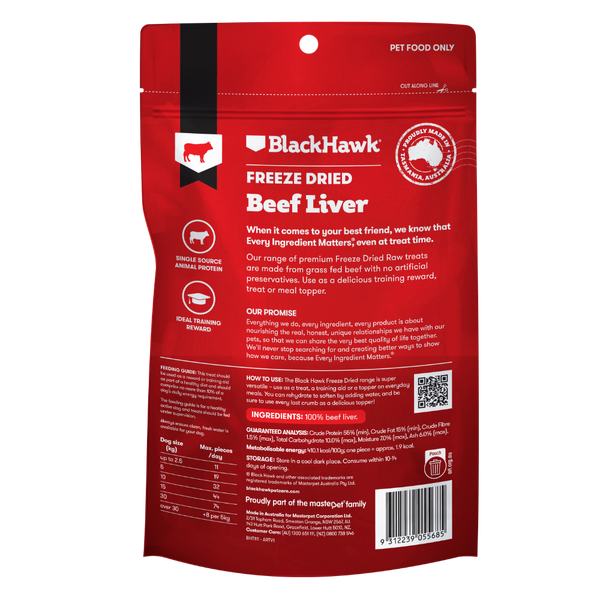 Reward your dog with a naturally nutritious treat using Black Hawk Freeze Dried Kangaroo Dog Treats, proudly made in Tasmania from 100% wild-sourced Australian kangaroo. These premium treats are gently freeze dried to lock in flavour and nutrients, offering a raw-style reward dogs love.