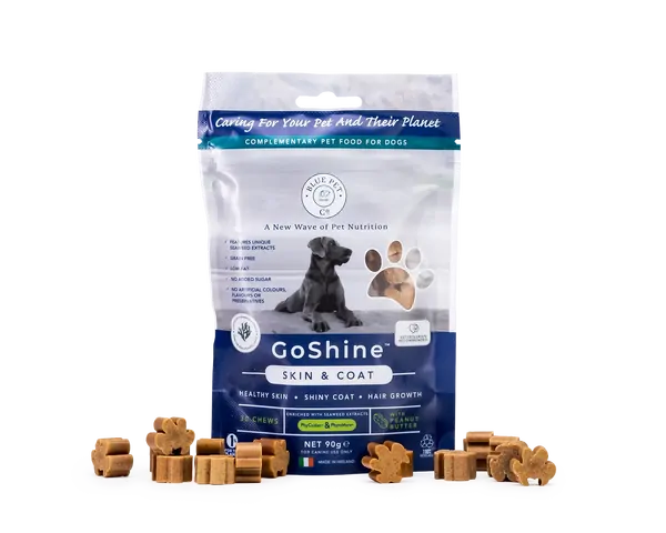 GoShine™ by Blue Pet Co is a natural, vet-designed skin and coat supplement for dogs, super-powered by two unique seaweed complexes PhyCoidan™ and PhytoMara™. Together, these bioactive Irish seaweed extracts nourish your dog's skin from the inside out, supporting a thicker, shinier and healthier coat while reducing irritation, dandruff and excess shedding.