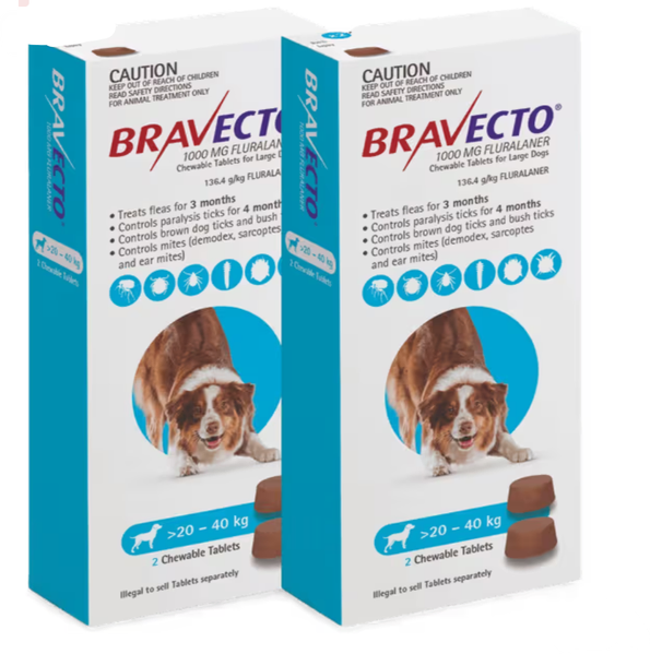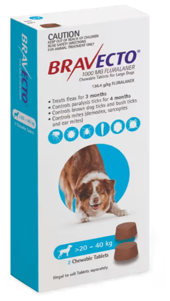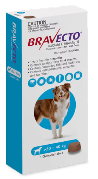 Bravecto Chewable Tablets for Large Dogs 20 - 40kg (Blue)