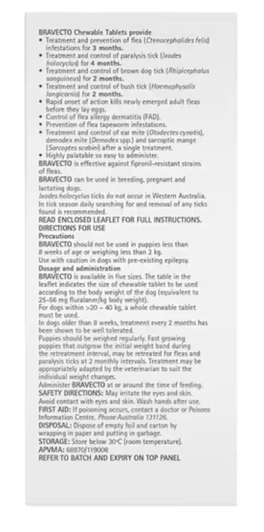 1 Chew: 3 months flea protection / 4 months paralysis tick protection