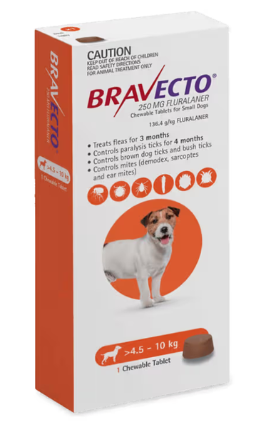 Give your small dog lasting protection in a single tasty chew with Bravecto Orange, the trusted parasite protection loved by pet parents and recommended by vets. Specially formulated for dogs weighing 4.5–10kg, Bravecto provides fast-acting and long-lasting defence against fleas, ticks, and mites—keeping your dog healthy, comfortable, and carefree.