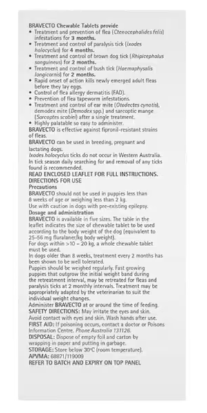 Bravecto Chewable Tablets for Medium Dogs 10 - 20kg (Green) 1pk