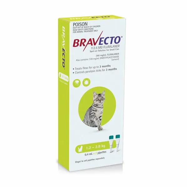 - Cats and kittens must be over 1.2kg to use Bravecto Spot on