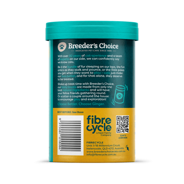 Give your cat a treat they'll love with Breeder’s Choice Cat Treats - Chicken & Blueberries with Catnip. These delicious snacks are packed with high-quality Australian chicken and nutritious blueberries, delivering a protein-rich bite to fuel your cat’s playful spirit. Made with care in regional Australia, these treats are free from artificial colours, flavours, and preservatives, providing a wholesome and natural option for your feline.
