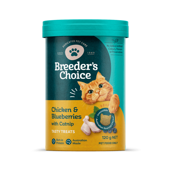 Breeders Choice Cat Treats - Chicken & Blueberry with Catnip 120g