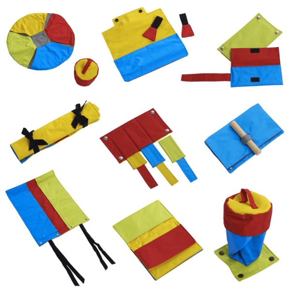 - Attach several tasks to the mat, with variable degrees of difficulty depending on whether the tasks are folded or left open.
