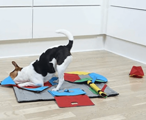 The BUSTER ActivityMat is an innovative dog activity toy. It enables you and your dog to engage while playing, giving your dog a fascinating mental challenge with plenty of diversity.