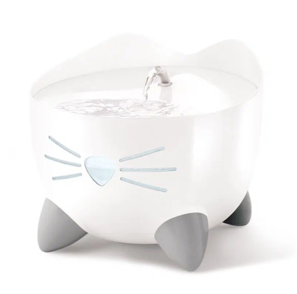 Equipped with Triple Action Filtration, the Catit PIXI Fountain keeps water fresh and clean by removing debris, odors, and impurities. A backlit cat nose and whiskers act as an adorable LED indicator, lighting up white continuously, blinking red when the water is low, and glowing solid red when empty—automatically shutting off to protect the pump.
