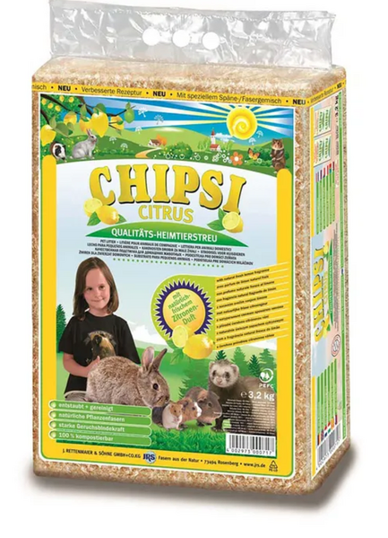 Citrus-scented Chipsi bedding combines superior performance with a refreshing scent, providing a comfortable, hygienic, and environmentally friendly option for pet owners who want the best for their small animals.