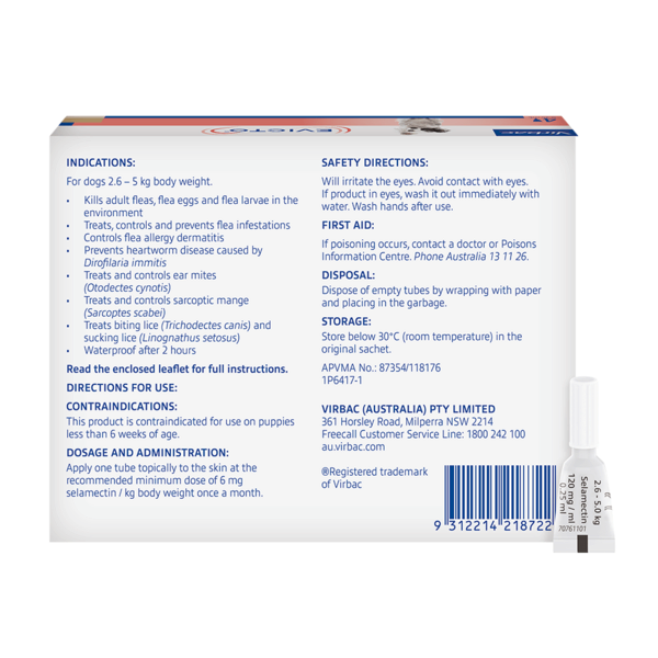 Evicto spot on treatment specifically targets fleas, heartworm, and ear mites for a full month. It is a topical treatment with a low volume, this makes it easy to apply with less wastage.