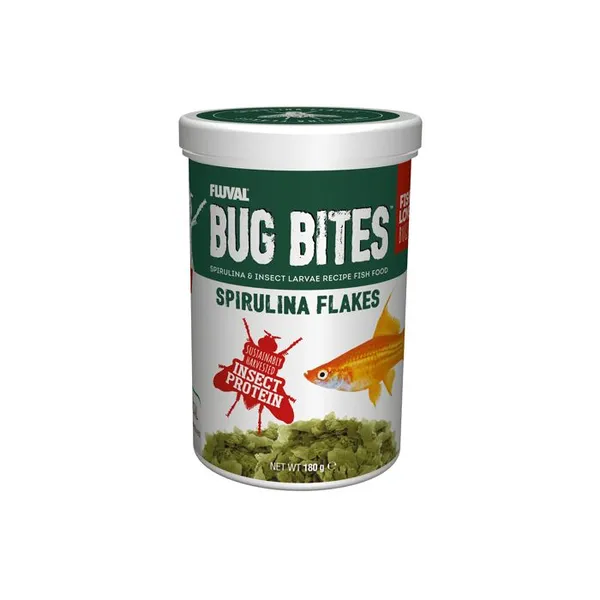 Fluval Bug Bites Spirulina Flakes are expertly crafted to replicate the natural insect and plant-based diet of fish. With Spirulina as the #1 ingredient - a premium, Hawaiian-sourced superfood these flakes deliver exceptional colour enhancement, improved digestion, and strong, healthy fins and scales. Ideal for all fish species, this formula supports vitality and balanced nutrition for daily feeding.
