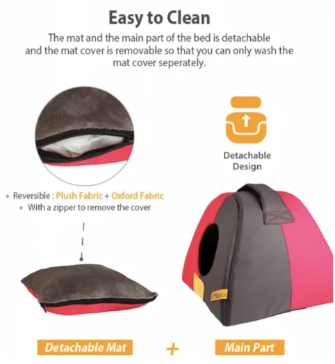 The reversible pillow with its removable cover adds versatility and flair, allowing you to customize the look and feel to suit your cat's preferences. Plus, the entire house is machine washable, ensuring hassle-free cleaning and maintenance for your convenience.