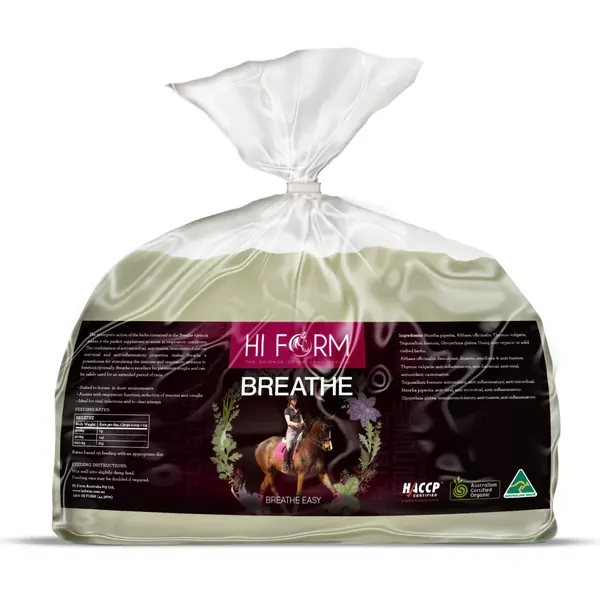 Hi Form Breathe is a natural herbal formula designed to support normal respiratory function in horses. Ideal for stabled horses, those exposed to dusty or dry environments, or horses exhibiting occasional coughs, this carefully crafted blend helps soothe and support the airways.