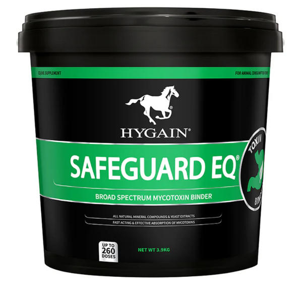 Mycotoxins, produced by certain fungi found in pasture grasses, hay, chaff, straw, and grains, can have a significant impact on your horse’s health. These toxins are challenging to detect due to their odorless, tasteless, and invisible nature. The occurrence of mycotoxins is difficult to predict, which is why adding a broad-spectrum mycotoxin binder like HYGAIN SAFEGUARD EQ to your horse’s diet is recommended. The binder works by safely binding the mycotoxins, allowing them to pass through the digestive system and exit with manure.