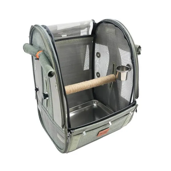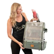 Ideal for Amazon parrots, African greys, rose-breasted cockatoos, golden-capped conures, eclectus parrots and cockatiels, this Jungle Green backpack combines durability, ventilation and innovative design for stress-free hikes, vet visits, travel and everyday outings.