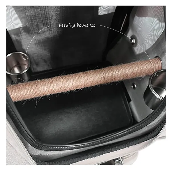 Featuring breathable 304 stainless steel mesh panels and a hemp rope wooden perch, this backpack promotes ventilation while giving your bird a stable, natural perch during travel. Designed for visibility, airflow and durability, it’s ideal for walks, hikes, shopping trips and car travel.