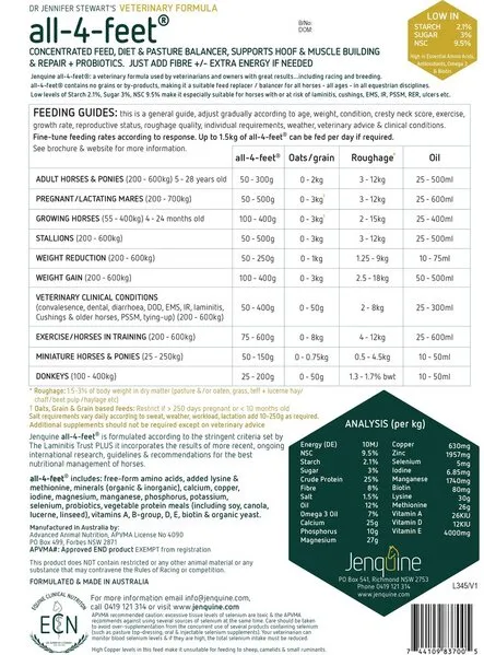 Jenquine all-4-feet® is a concentrated feed that is ideal for ALL horses and ponies - and their feet. Based on diet analysis, it may replace, balance or remove the need to feed the following: