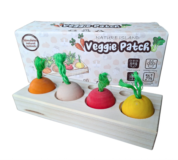 The Nature Island Veggie Patch is a fun and interactive enrichment toy designed to mentally stimulate and challenge small animals. Featuring a patch of removable veggie pieces, your pet must work to pull, nudge and gnaw each vegetable free - engaging their natural curiosity and problem-solving instincts in the most delightful way.