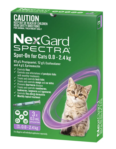 *CLEARANCE-SHORTDATED BB04/2026 NexGard Spectra for Kittens & Cats 0.8 - 2.4kg (Purple) 3pk*4 LEFT