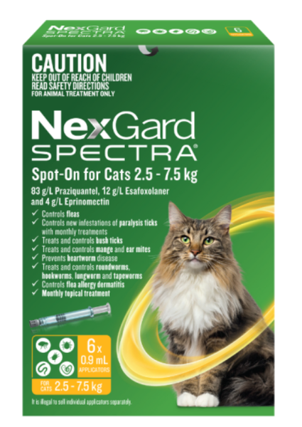 NexGard Spectra Spot-On for Medium/Large Cats 2.5 - 7.5kg (Yellow) 6pk