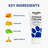 Enriched with Manuka honey, calendula, gotu kola, hyaluronic acid, jojoba oil, and avocado oil, Derma Cream delivers long-lasting hydration while helping maintain soft, smooth, and healthy-looking skin.
