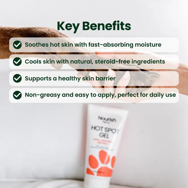 Nourish Pet Co Hot Spot Gel is a lightweight, fast-absorbing formula designed to cool, calm, and comfort itchy, irritated skin. Perfect for hot spots, bug bites, dry patches, and sensitive areas, this soothing gel delivers hydration while supporting your pet’s natural skin barrier.