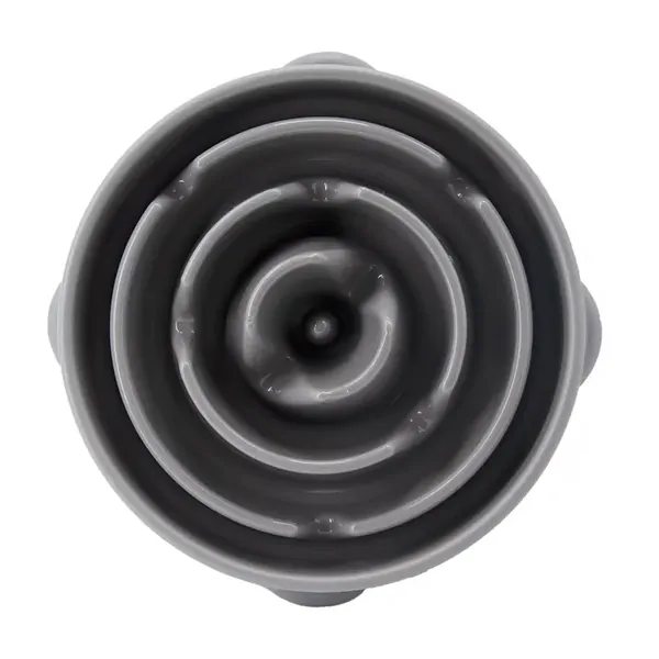 The Outward Hound Fun Feeder Slo-Bowl Drop in grey is designed with meal-lengthening ridges and deep maze grooves to slow down fast eaters. By extending mealtime up to 10x longer, this slow-feeder bowl helps reduce bloating, regurgitation, and digestive issues for healthier eating habits.