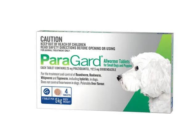Paragard All Wormer Tablets for small dogs and Puppies 5kg tablets packet of 4
