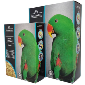Passwell Parrot Soft Food is a high-protein diet developed to suit the nutritional needs of breeding parrots. It contains omega fatty acids, vitamins, and minerals to help improve egg quality and chick health, and it may also be used as a weaning diet for young birds or a conditioning diet for unwell birds.