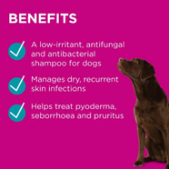 Ideal for dogs with seborrhoea, pyoderma, or fungal skin infections, this gentle medicated shampoo offers effective cleansing and skin therapy in one easy-to-use formula.