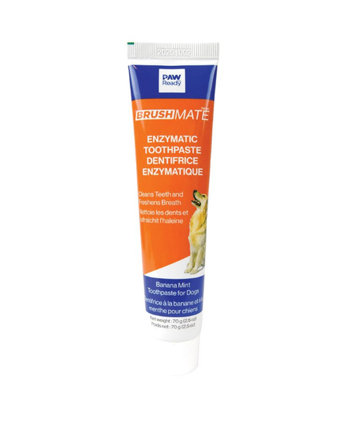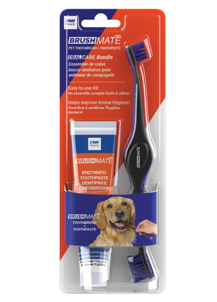 The Paw Ready Oral Care Brushing Dental Kit combines the BrushMate Enzymatic Toothpaste with a premium dual-ended toothbrush to keep your dog’s teeth clean, breath fresh, and gums healthy. Designed for dogs and puppies, this kit provides a safe and effective way to reduce plaque, tartar, and oral bacteria.