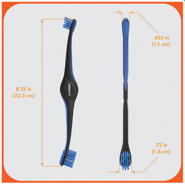 The dual-ended toothbrush features soft, angled bristles to suit dogs of all sizes, while its ergonomic handle ensures excellent control during brushing. A long neck allows easy access to hard-to-reach teeth, and built-in rubber gum massagers help stimulate gum health. The tongue cleaner on the back of the brush adds another layer of freshness by reducing bacteria buildup.