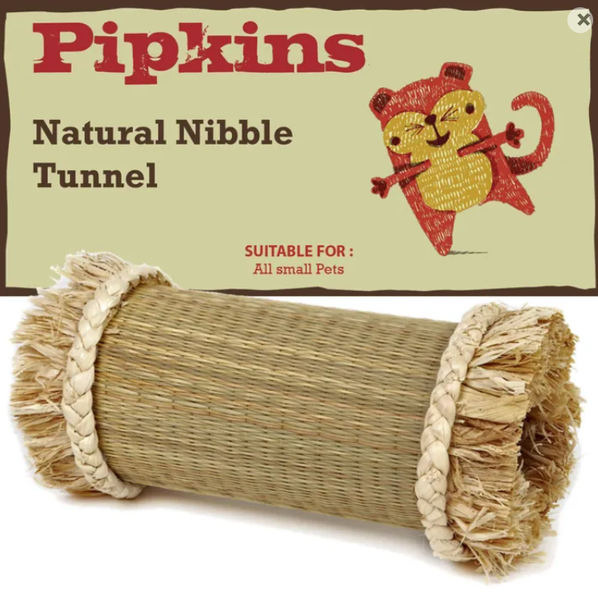 The Pipkins Natural Nibble Tunnel Small from Petface is a fun and enriching accessory designed to support the natural behaviours of small pets. Made from natural seagrass and corn materials, this tunnel encourages chewing, exploring and hiding, helping to keep small animals mentally stimulated and physically active.