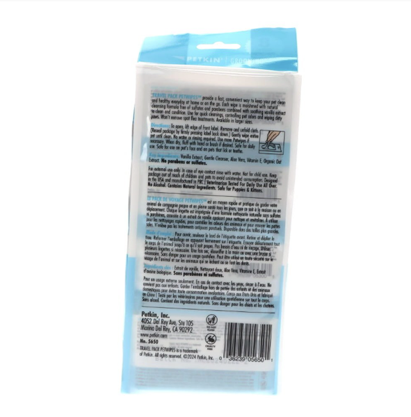 Petkin Travel Pack Pet Wipes Vanilla Scented 64 wipes