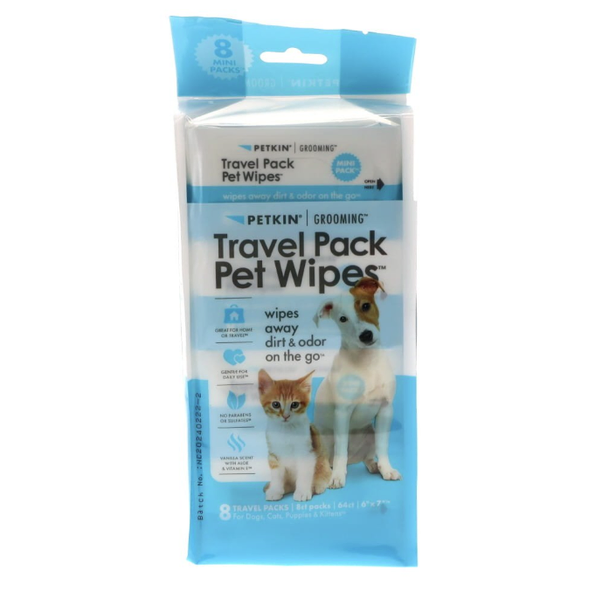 The Petkin Travel Pack Pet Wipes are a convenient grooming essential for pet parents who are always on the move. Designed in compact, travel-friendly packs, these wipes easily slip into your bag, pocket, or glove box, ensuring quick access whenever your pet needs a freshen-up.