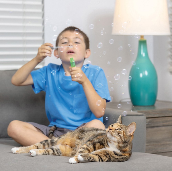 Safe for both cats and kids, IncrediBUBBLES are lightweight, durable, and perfect for interactive fun indoors or outdoors. Simply blow or wave them in the air for maximum float time. With thousands of bubbles in every bottle, you’ll enjoy hours of bonding and entertainment with your feline friend.
