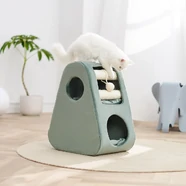 A luxuriously padded hidey hole gives your cat a warm and private retreat to snooze in, while multiple openings add an extra element of fun and exploration. An attached natural jute twine ball provides a satisfying interactive toy, and multiple sisal-wrapped scratching surfaces mean your cat has everything they need to keep their claws healthy and your furniture safe.