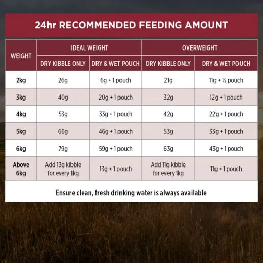 Feeding Instructions: To maintain an ideal body condition, monitor your cat’s weight regularly. You should be able to feel their ribs easily, and their waist should be visible when viewed from above. Make adjustments to their food intake based on their age, activity level, and weight.