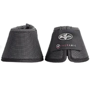 The bell boots provide ceramic therapy to your horse by reflecting natural body heat in the form of long wave infared radiation. This radiation is readily absorbed by the body and has been proven to increase blood circulation, reduce inflammation ans ease pain. In addition to the Theramic lining, the textured TPU outer layer provides protection against interference, the neoprene interior absorbs shock, and the lycra lining prevents rubbing.