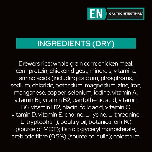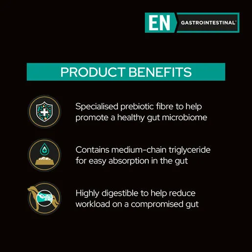 PURINA® PRO PLAN® Veterinary Diets Canine EN Gastrointestinal™ is specially formulated to nutritionally manage dogs and puppies with gastrointestinal issues, including vomiting, diarrhoea, pancreatitis, gastritis, enteritis, and malabsorption.