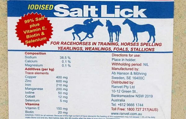 The iodised salt lick contains all of these substances and contributes to an increase in the horse's well-being. The iodised salt lick also has a well-balanced addition of Vitamin E and trace elements that are important for the body to be able to function without interference.