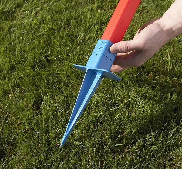 | Assembly | Two upright poles with ground anchor spikes |