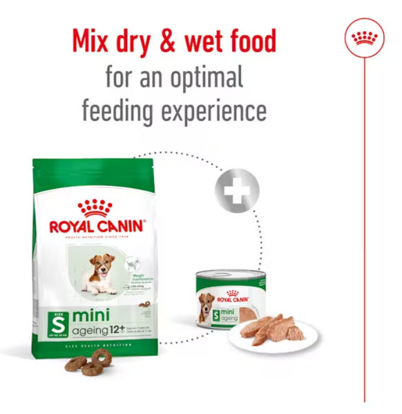 For added variety and enhanced aroma, ROYAL CANIN® Mini Ageing 12+ is also available in two wet food textures: