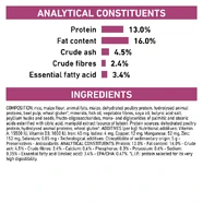 Protein sources: dehydrated poultry protein, hydrolysed animal proteins, wheat gluten*